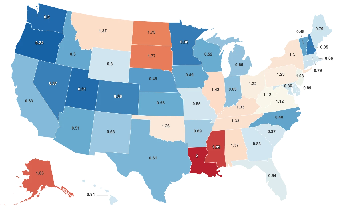 | 47 | New Hampshire | 0.35 | 46 |